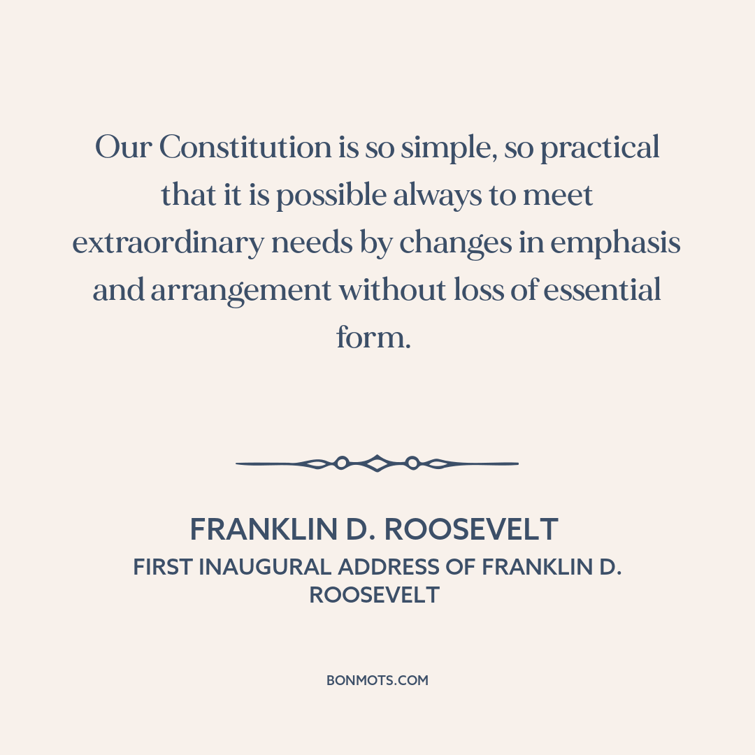 Our Constitution is so simple, so practical that it is possible always to meet extraordinary needs by changes in emphasis and arrangement without loss of essential form.