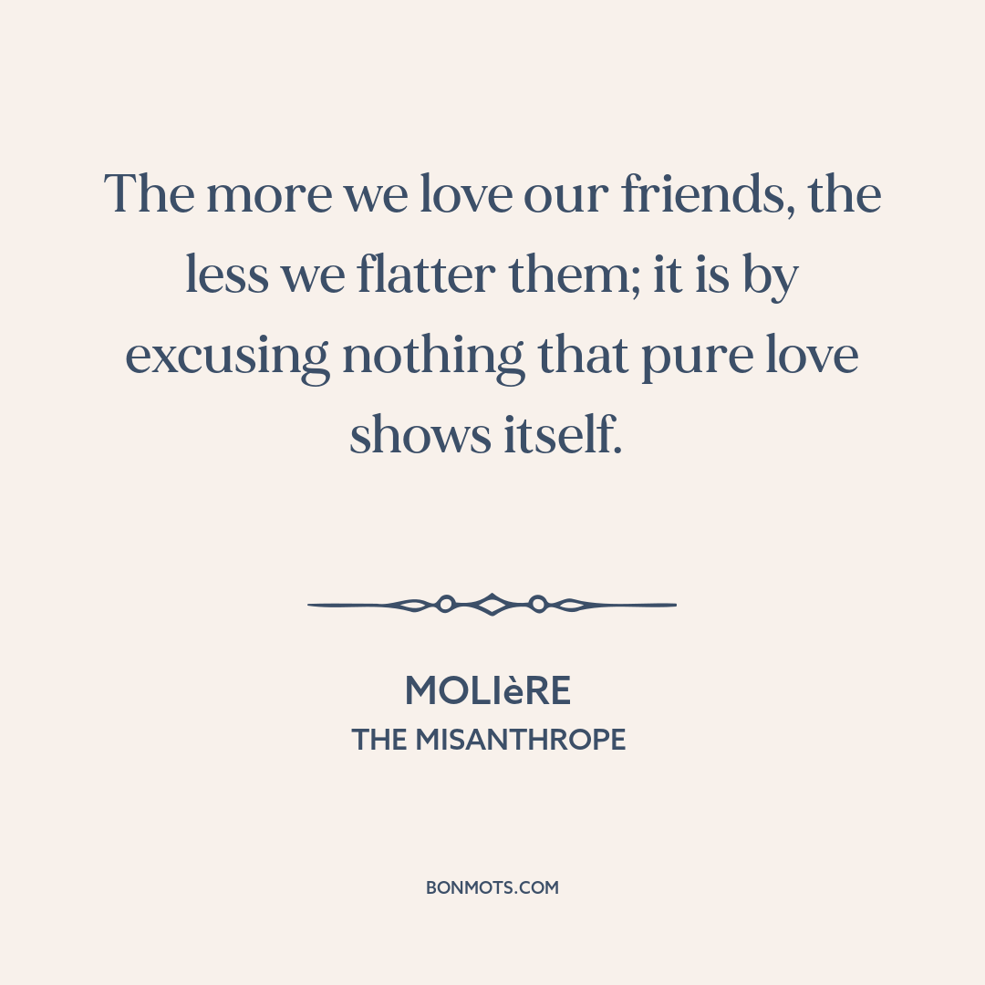The more we love our friends, the less we flatter them; it is by excusing nothing that pure love shows itself.