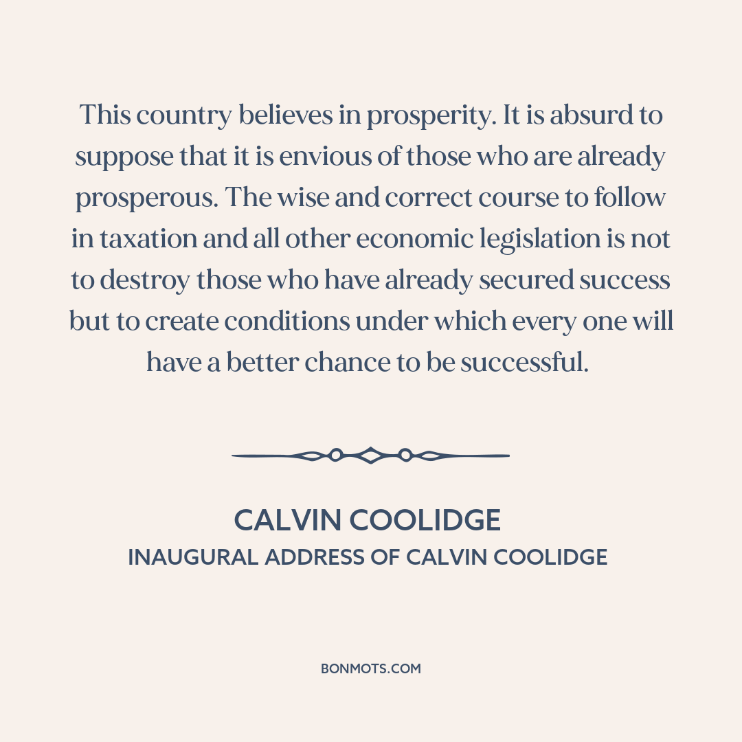 This country believes in prosperity. It is absurd to suppose that it is envious of those who are already prosperous. The wise and correct course to follow in taxation and all other economic legislation is not to destroy those who have already secured success but to create conditions under which every one will have a better chance to be successful.