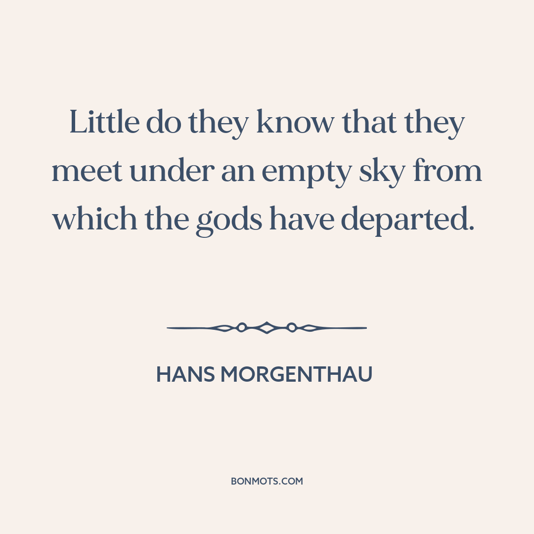 Little do they know that they meet under an empty sky from which the gods have departed.
