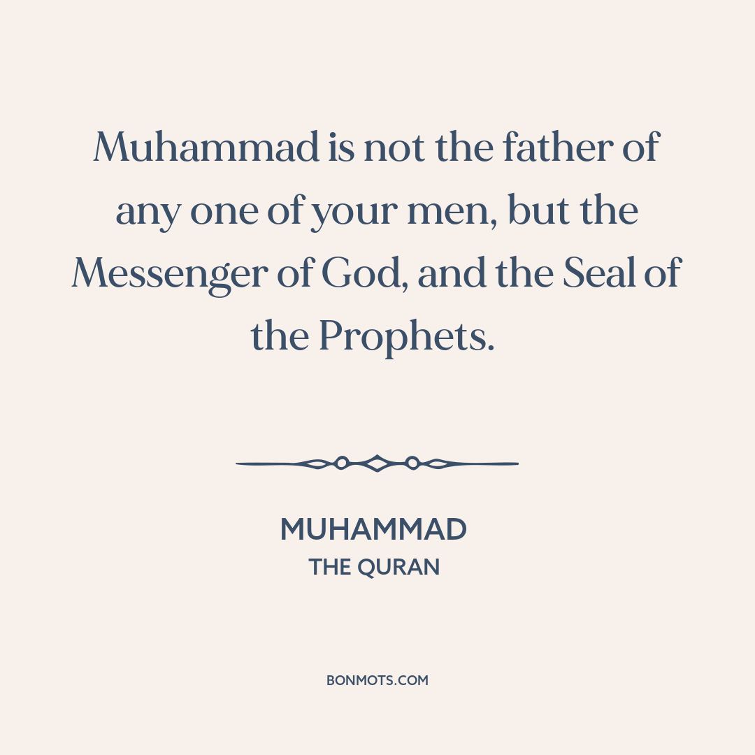 Muhammad is not the father of any one of your men, but the Messenger of God, and the Seal of the Prophets.