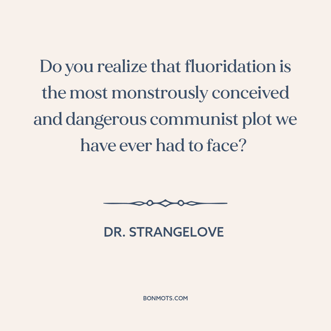 Do you realize that fluoridation is the most monstrously conceived and dangerous communist plot we have ever had to face?