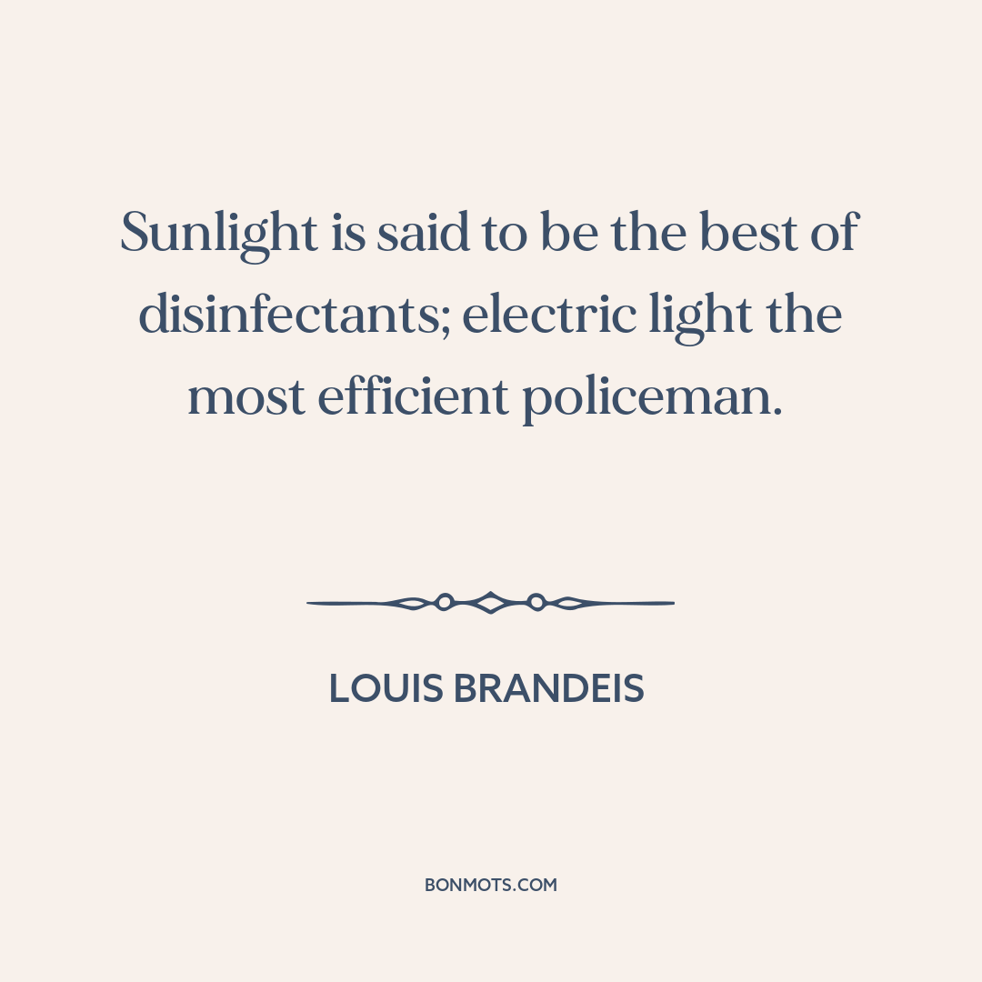 Sunlight is said to be the best of disinfectants; electric light the most efficient policeman.
