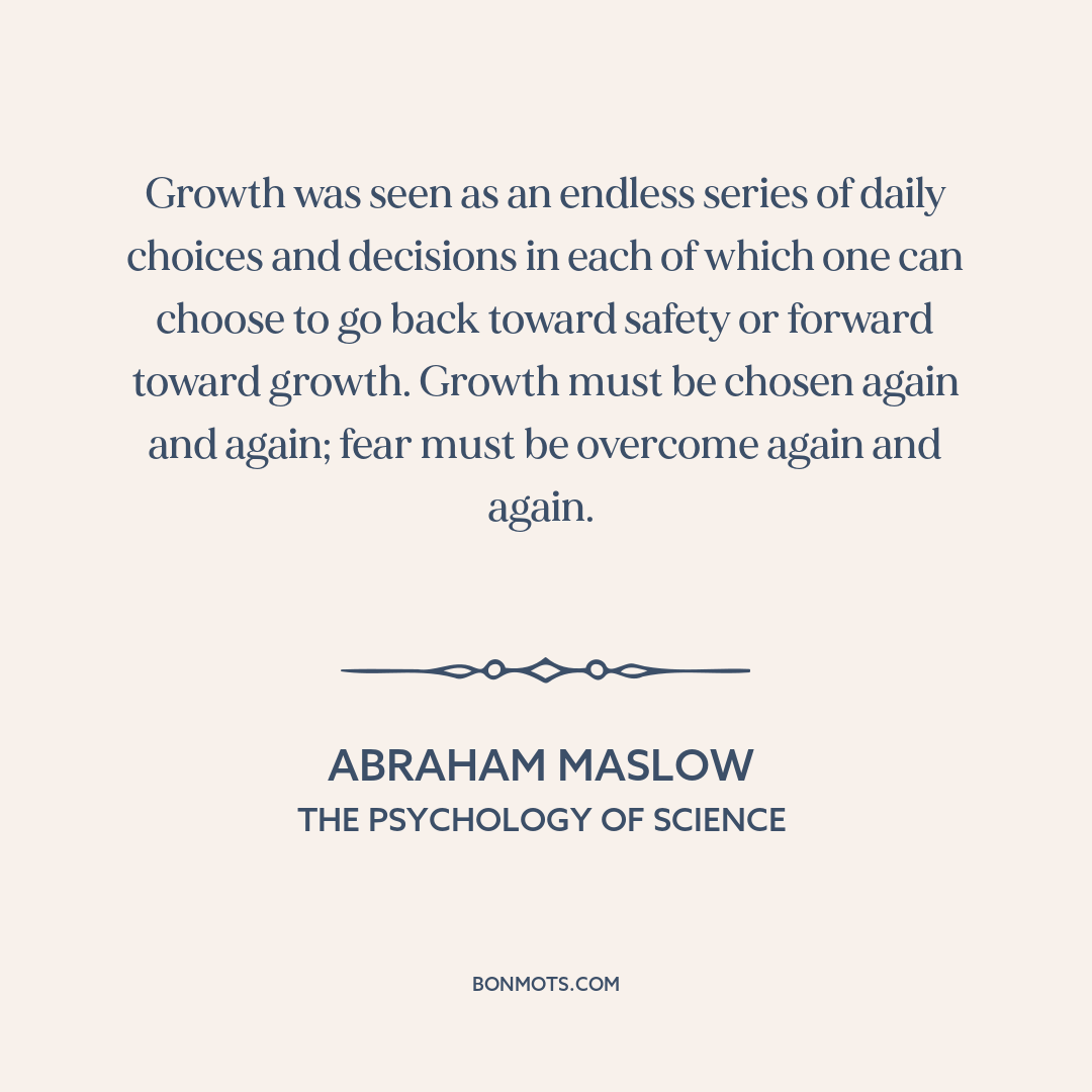 Growth was seen as an endless series of daily choices and decisions in each of which one can choose to go back toward safety or forward toward growth. Growth must be chosen again and again; fear must be overcome again and again.