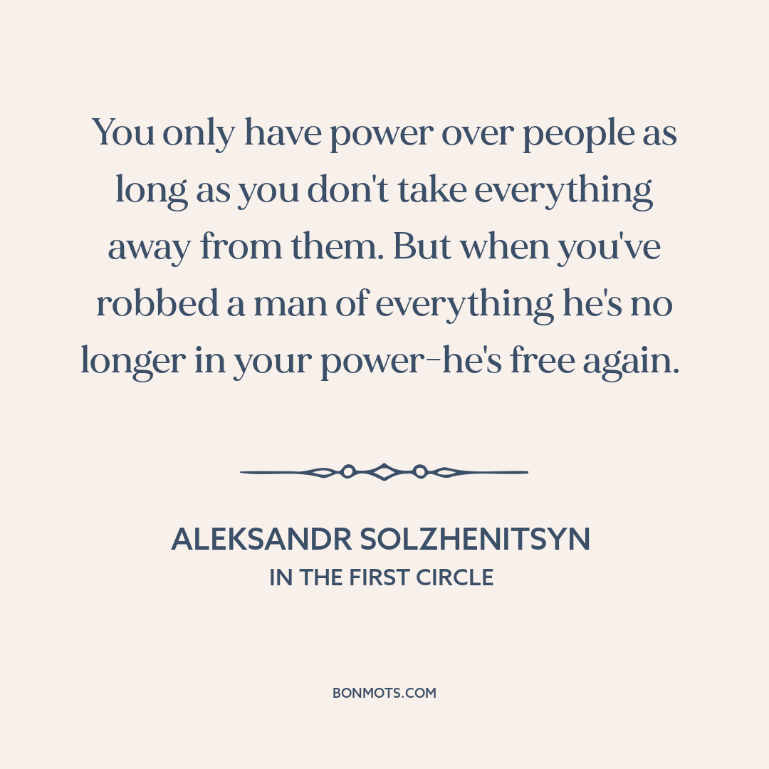 You only have power over people as long as you don't take everything away from them. But when you've robbed a man of everything he's no longer in your power-he's free again.