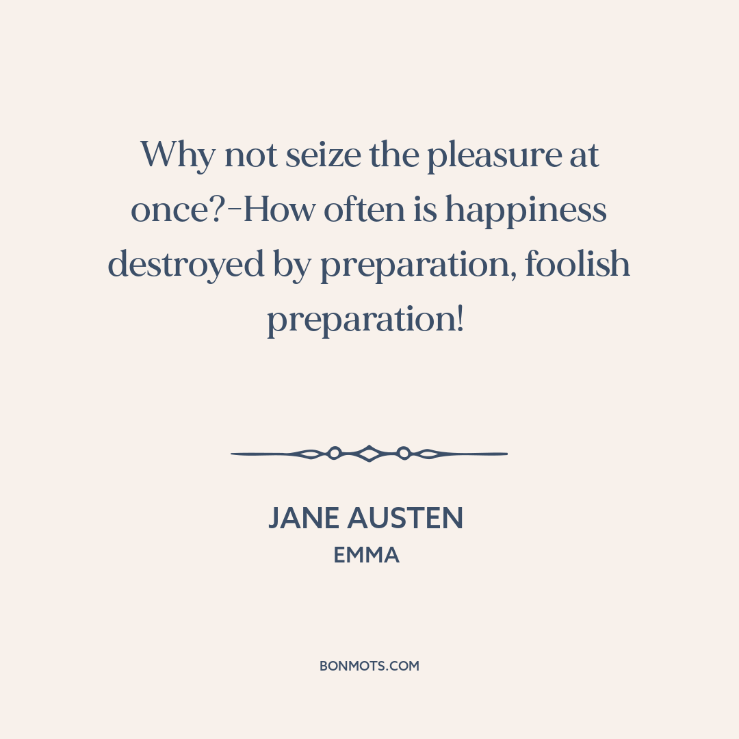 Why not seize the pleasure at once?-How often is happiness destroyed by preparation, foolish preparation!