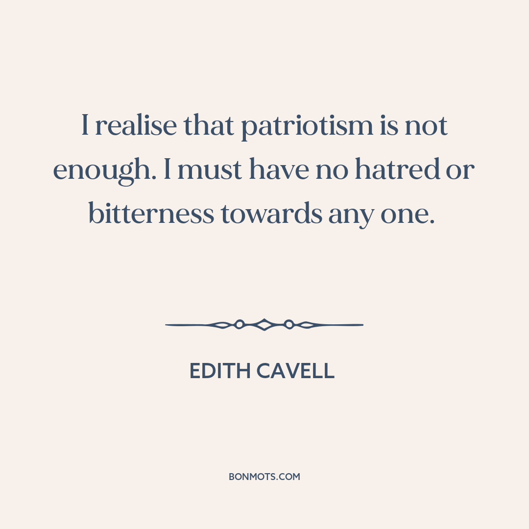 I realise that patriotism is not enough. I must have no hatred or bitterness towards any one.