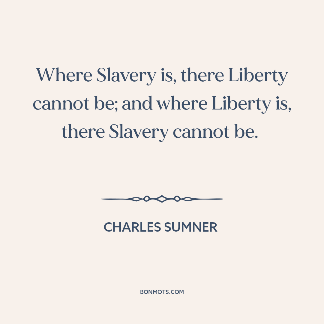 Where Slavery is, there Liberty cannot be; and where Liberty is, there Slavery cannot be.