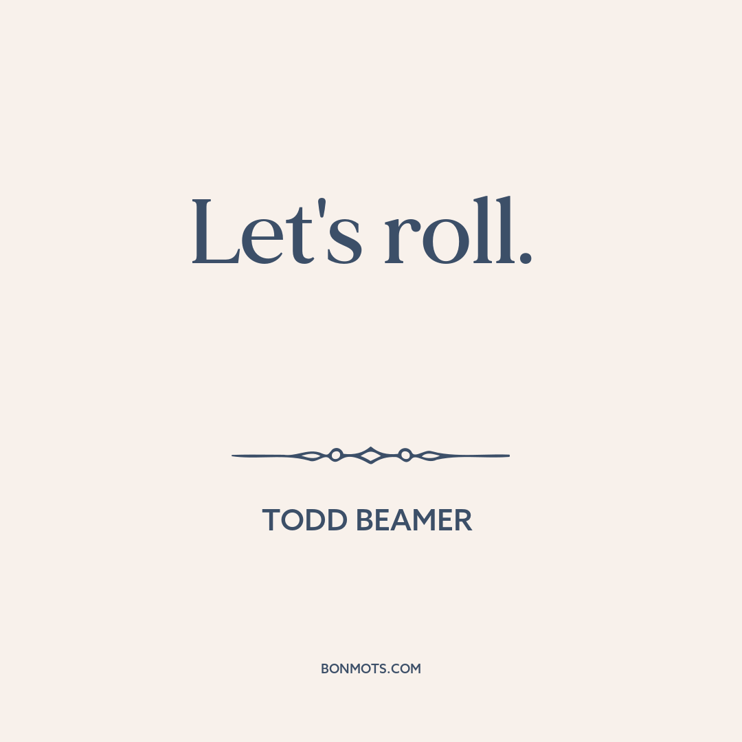 Beamer, Todd. Quoted in "A Sky Filled with Chaos, Uncertainty and True Heroism." Written by Charles Lane, Don Phillips, and David Snyder. The Washington Post, 17 Sept. 2001. Originally overheard by a telephone operator. United Airlines Flight 93, 11 Sept. 2001.