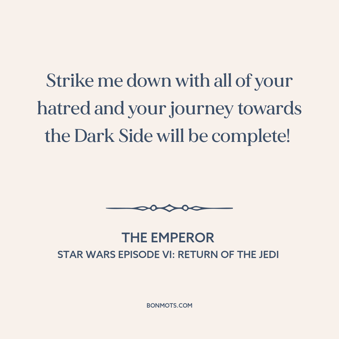 Strike me down with all of your hatred and your journey towards the Dark Side will be complete!