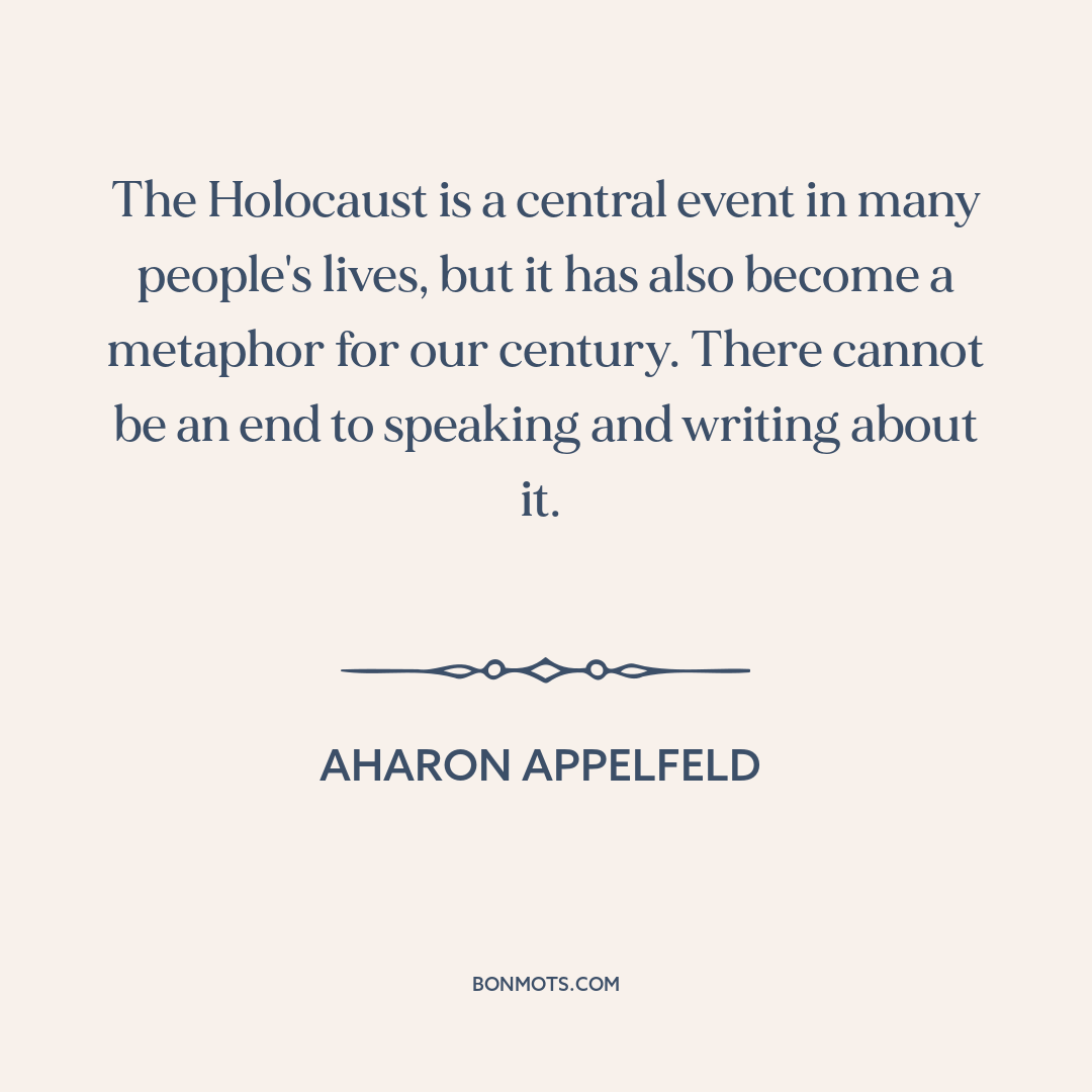 The Holocaust is a central event in many people's lives, but it has also become a metaphor for our century. There cannot be an end to speaking and writing about it.