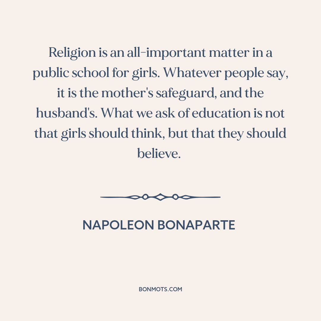 Religion is an all-important matter in a public school for girls. Whatever people say, it is the mother's safeguard, and the husband's. What we ask of education is not that girls should think, but that they should believe.