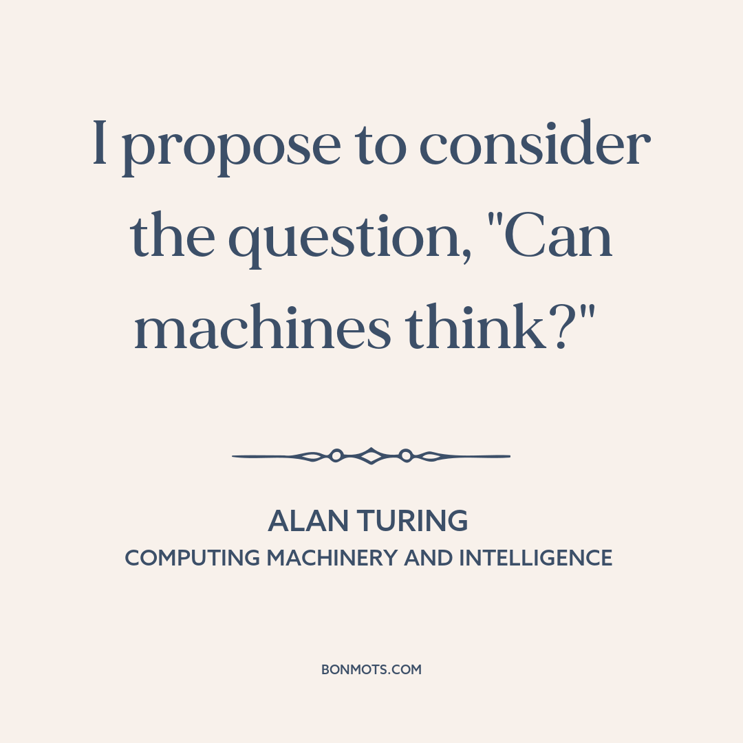 I propose to consider the question, "Can machines think?"