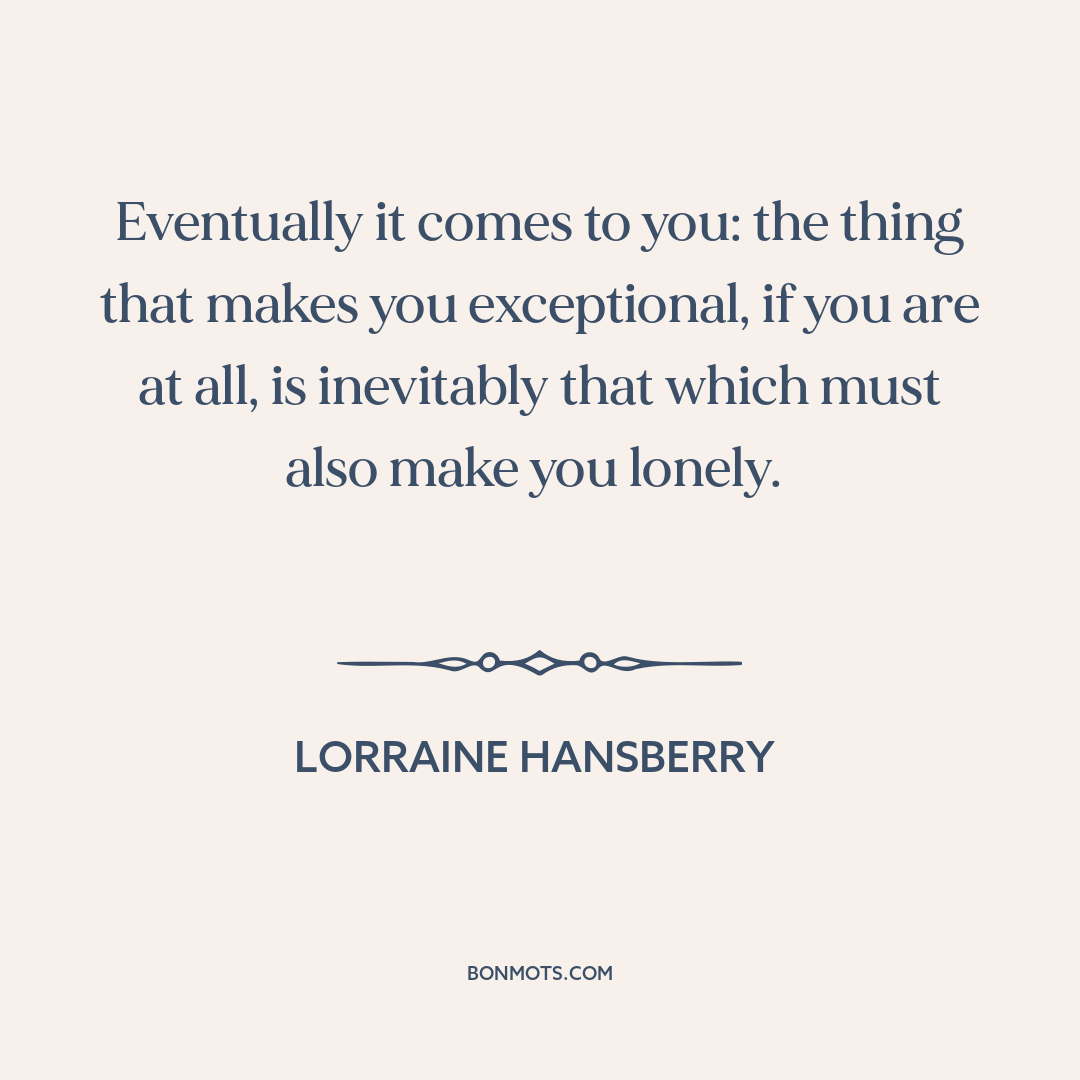Eventually it comes to you: the thing that makes you exceptional, if you are at all, is inevitably that which must also make you lonely.