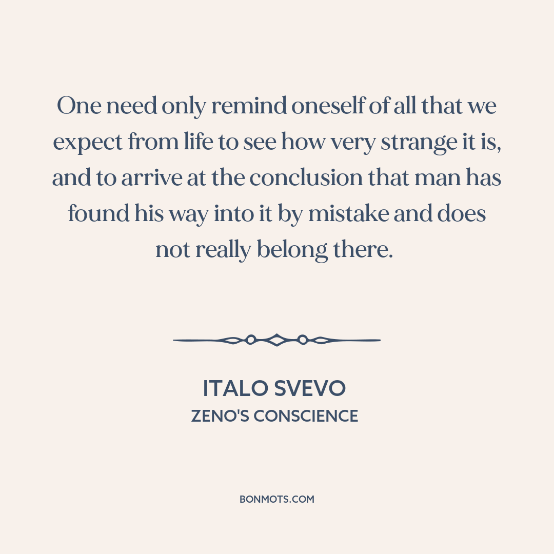 One need only remind oneself of all that we expect from life to see how very strange it is, and to arrive at the conclusion that man has found his way into it by mistake and does not really belong there.