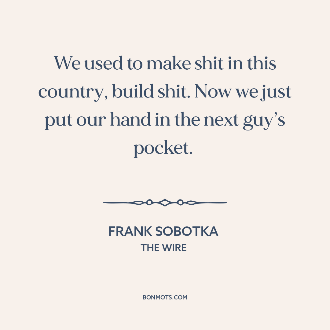 We used to make shit in this country, build shit. Now we just put our hand in the next guy’s pocket.