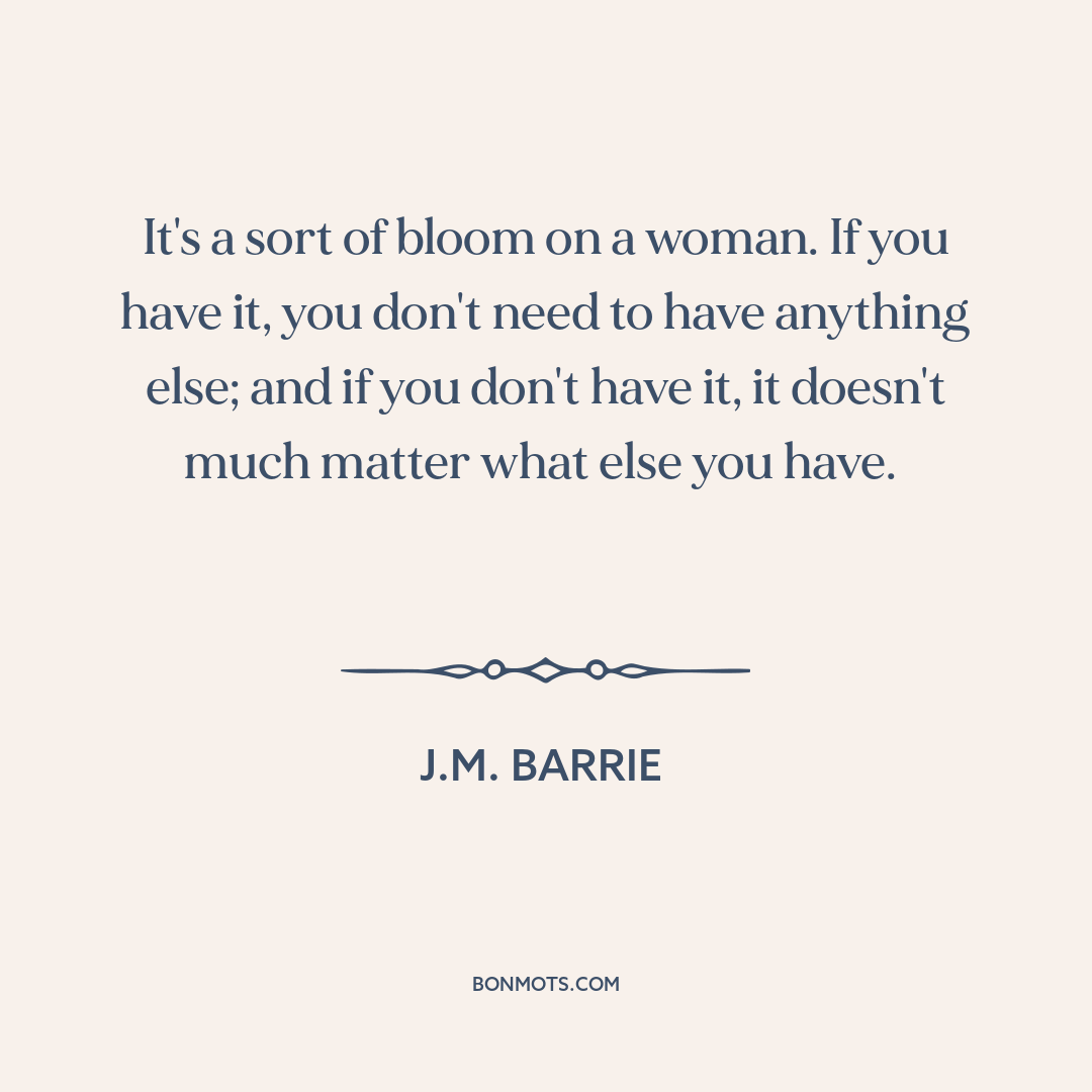 It's a sort of bloom on a woman. If you have it, you don't need to have anything else; and if you don't have it, it doesn't much matter what else you have.