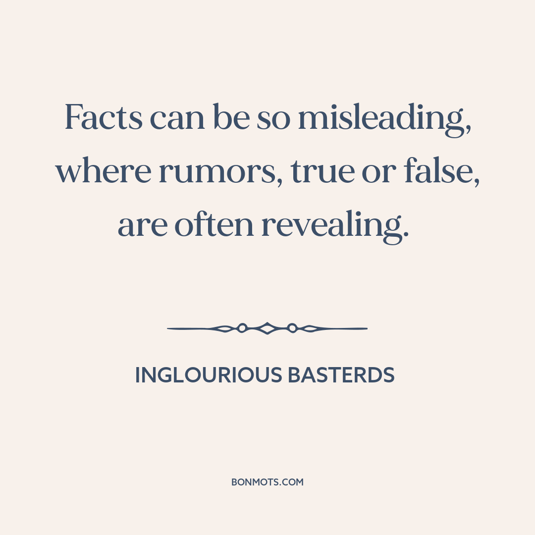 Facts can be so misleading, where rumors, true or false, are often revealing.
