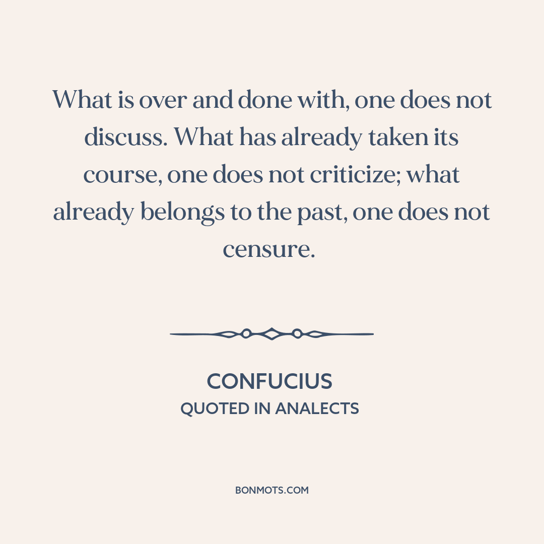 What is over and done with, one does not discuss. What has already taken its course, one does not criticize; what already belongs to the past, one does not censure.