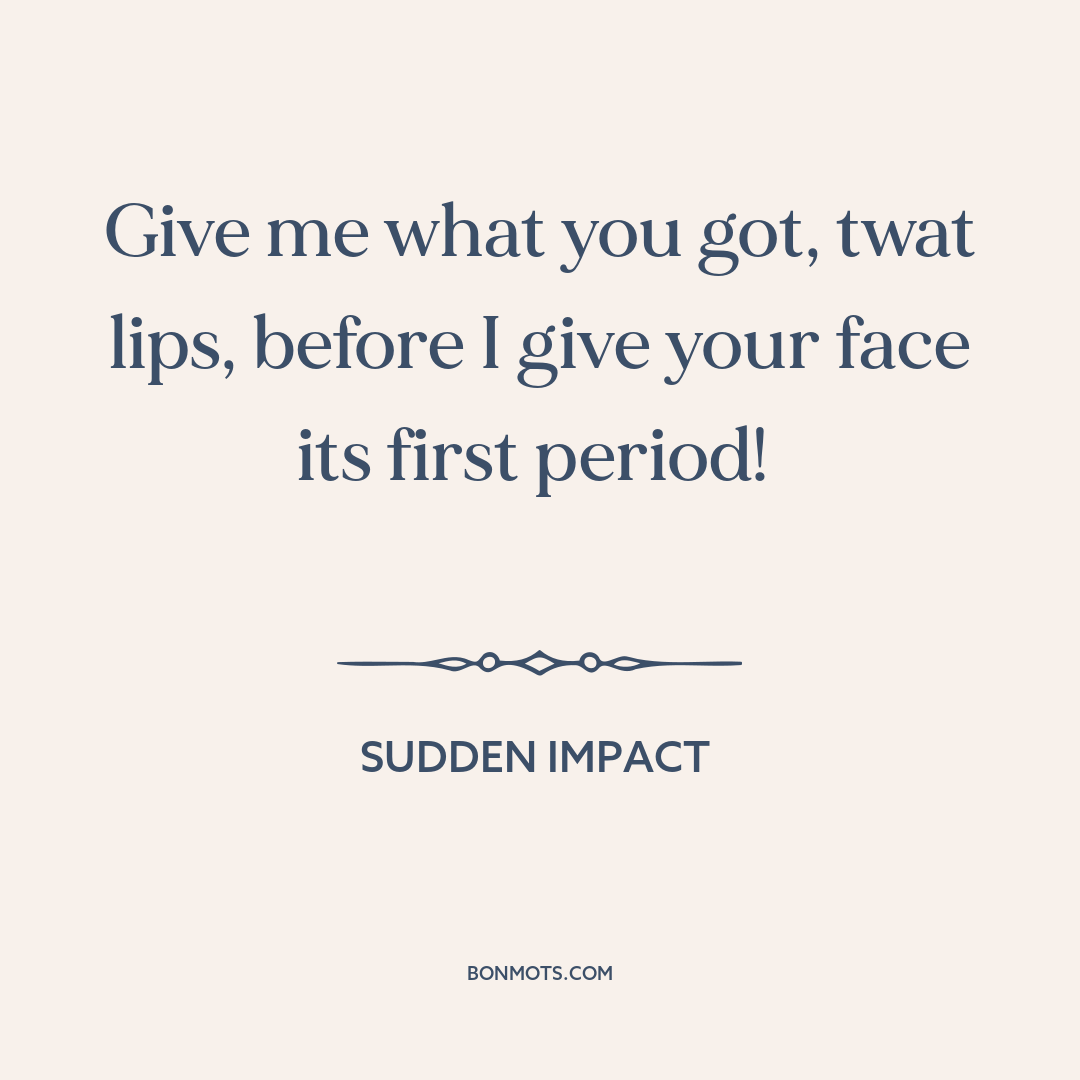 Give me what you got, twat lips, before I give your face its first period!
