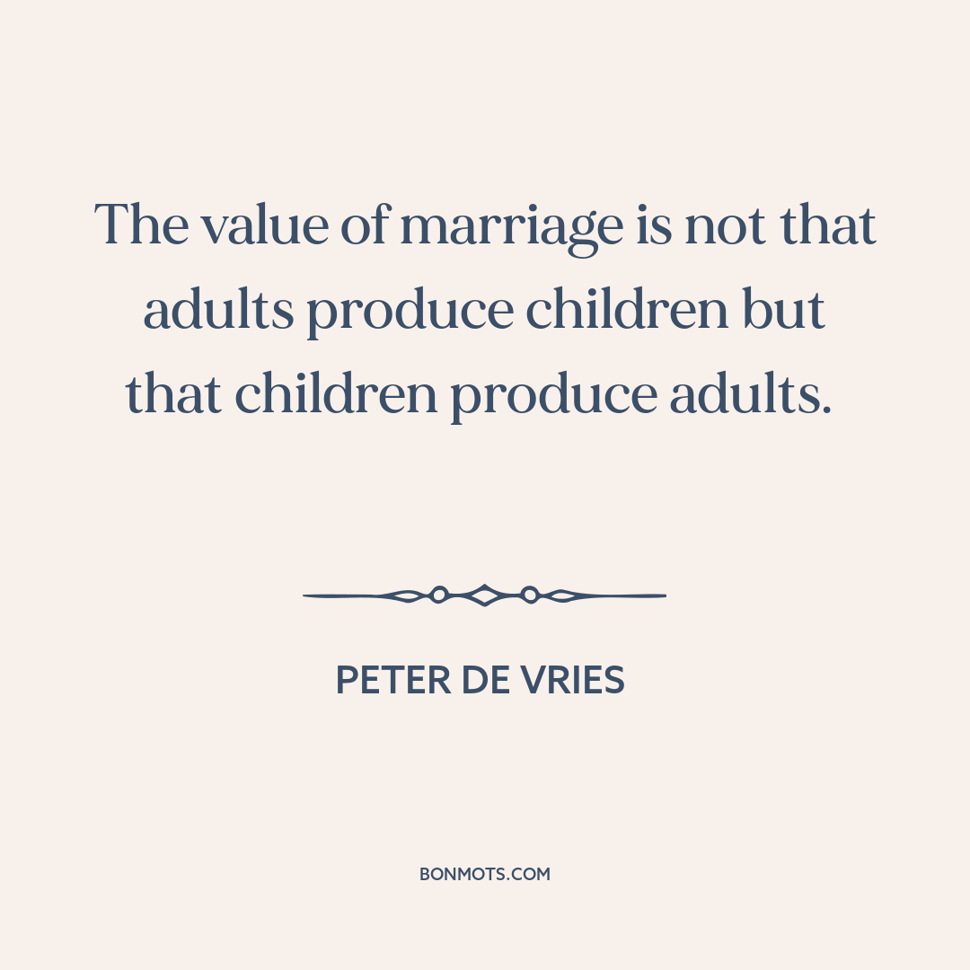 The value of marriage is not that adults produce children but that children produce adults.