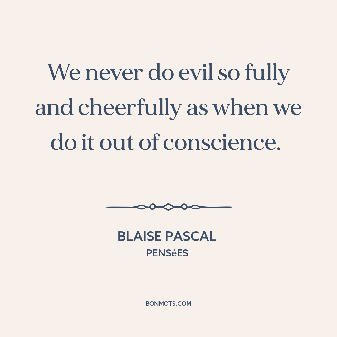 We never do evil so fully and cheerfully as when we do it out of conscience.