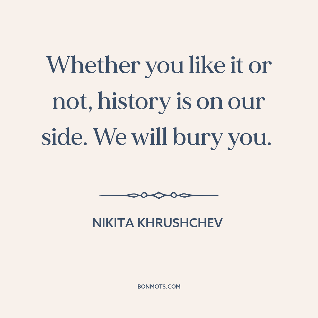 Khrushchev, Nikita. Quoted in "Foreign News: We Will Bury You!" Time Magazine, 26 Nov. 1956. Originally stated while addressing western ambassadors. Reception at the Polish embassy. 18 Nov. 1956, Moscow, Russia.
