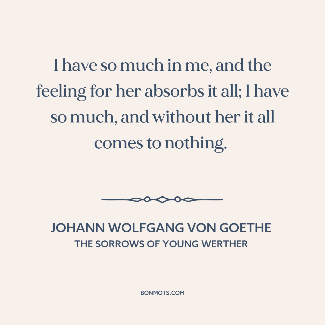 I have so much in me, and the feeling for her absorbs it all; I have so much, and without her it all comes to nothing.