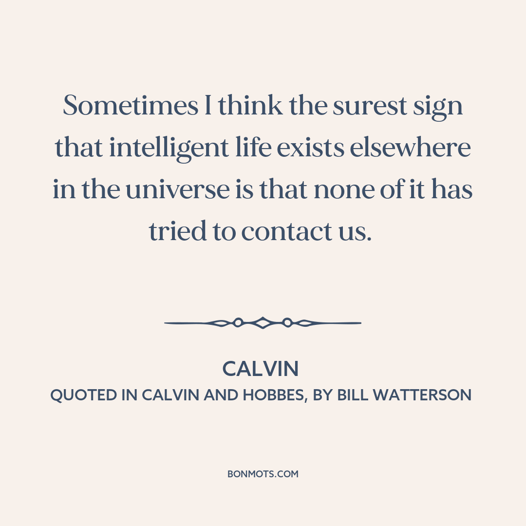 Sometimes I think the surest sign that intelligent life exists elsewhere in the universe is that none of it has tried to contact us.