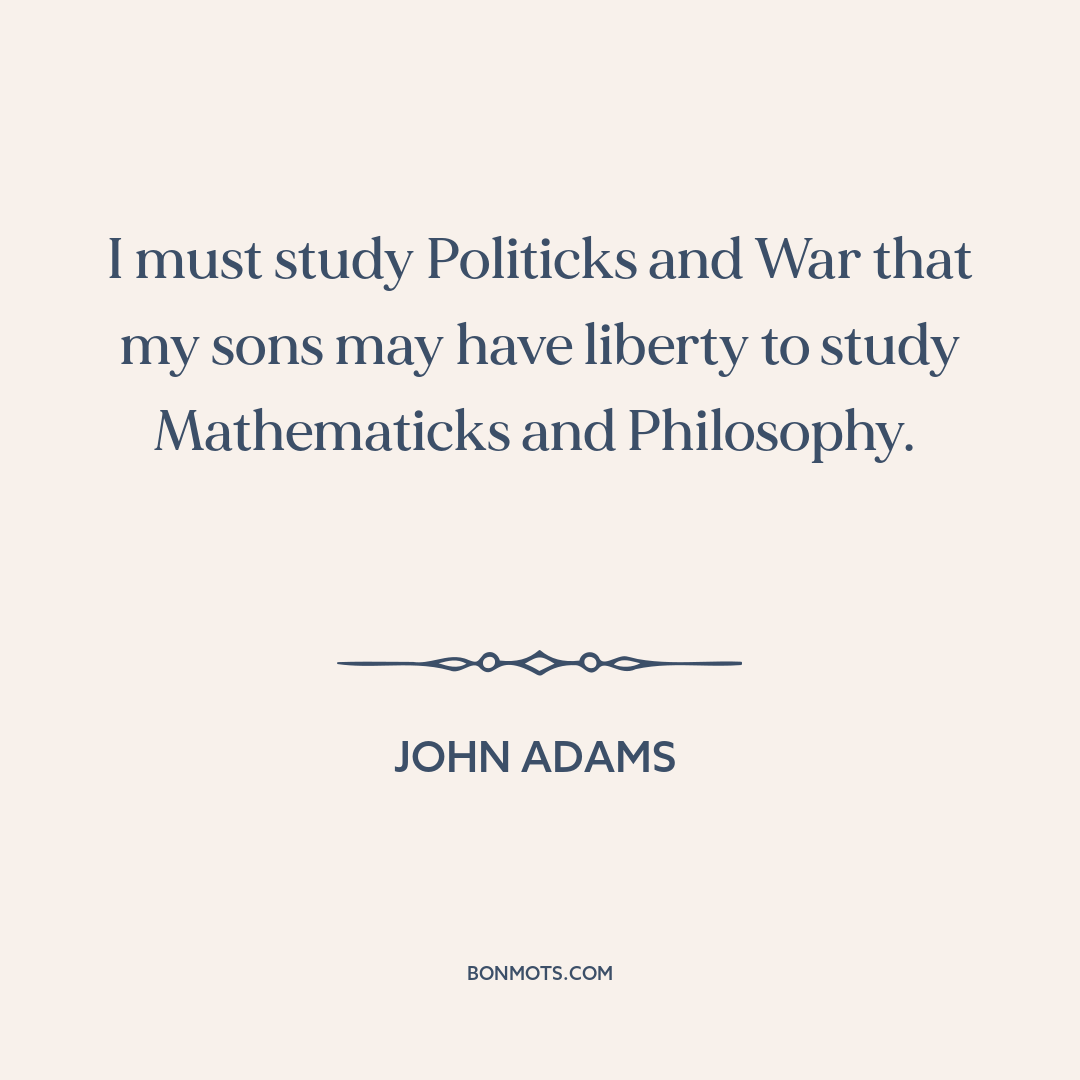 I must study Politicks and War that my sons may have liberty to study Mathematicks and Philosophy.