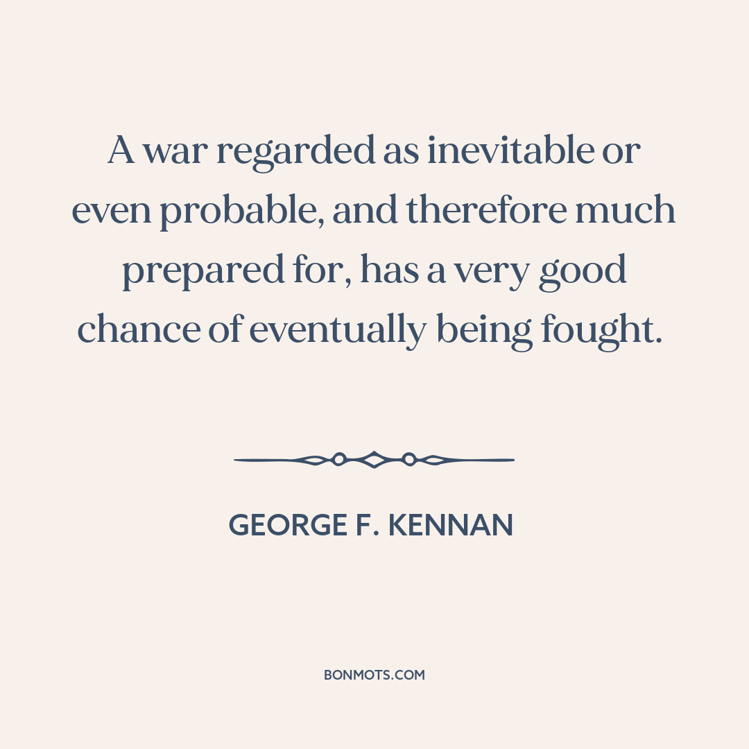 A war regarded as inevitable or even probable, and therefore much prepared for, has a very good chance of eventually being fought.