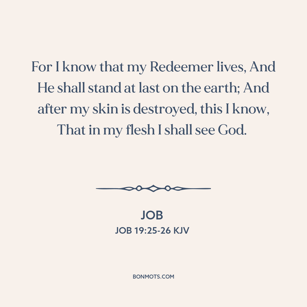 For I know that my Redeemer lives, And He shall stand at last on the earth; And after my skin is destroyed, this I know, That in my flesh I shall see God.