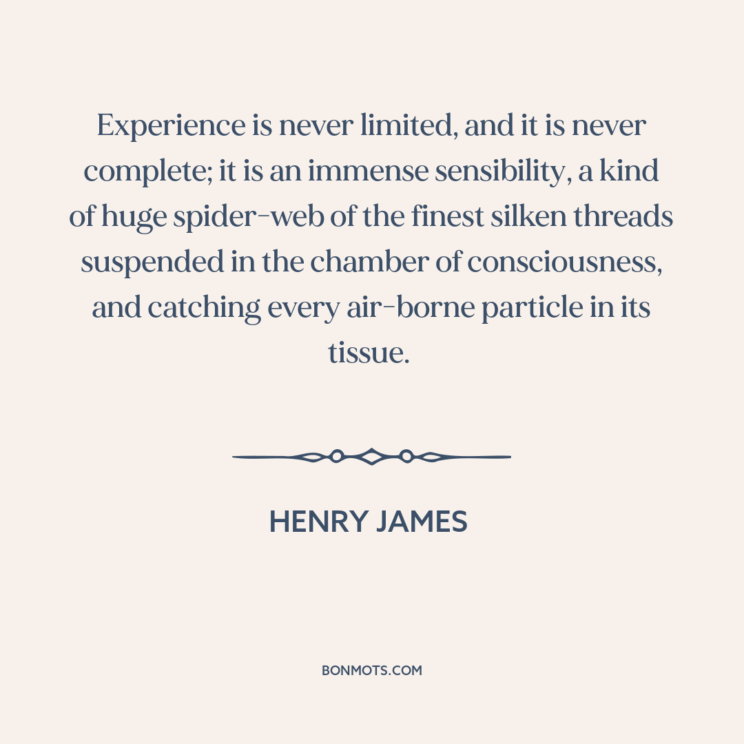 Experience is never limited, and it is never complete; it is an immense sensibility, a kind of huge spider-web of the finest silken threads suspended in the chamber of consciousness, and catching every air-borne particle in its tissue.
