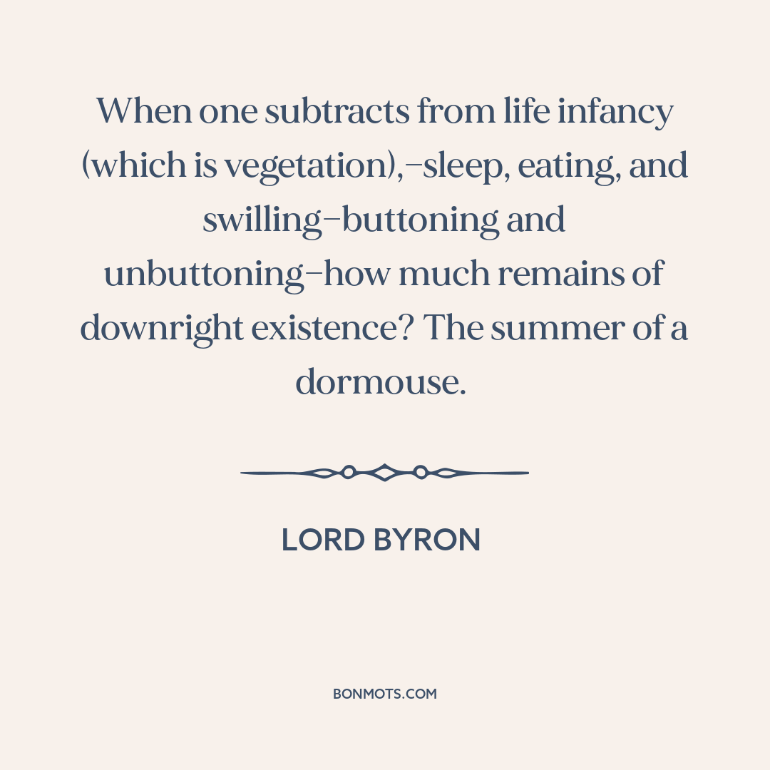When one subtracts from life infancy (which is vegetation),—sleep, eating, and swilling—buttoning and unbuttoning—how much remains of downright existence? The summer of a dormouse.