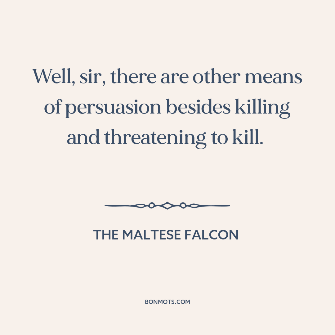 Well, sir, there are other means of persuasion besides killing and threatening to kill.