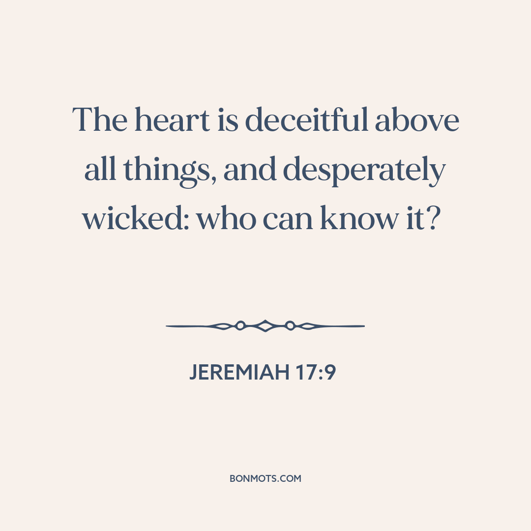 The heart is deceitful above all things, and desperately wicked: who can know it?