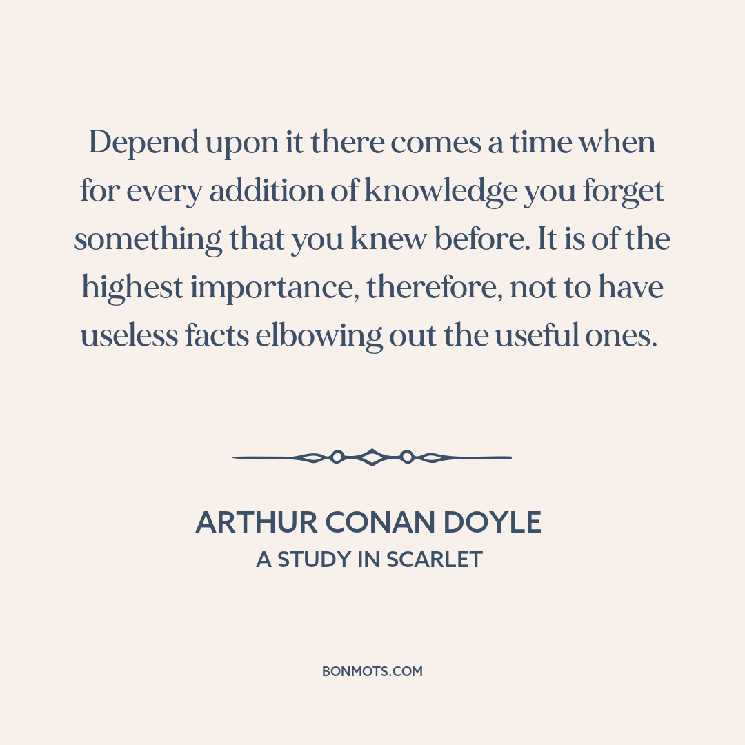 Depend upon it there comes a time when for every addition of knowledge you forget something that you knew before. It is of the highest importance, therefore, not to have useless facts elbowing out the useful ones.