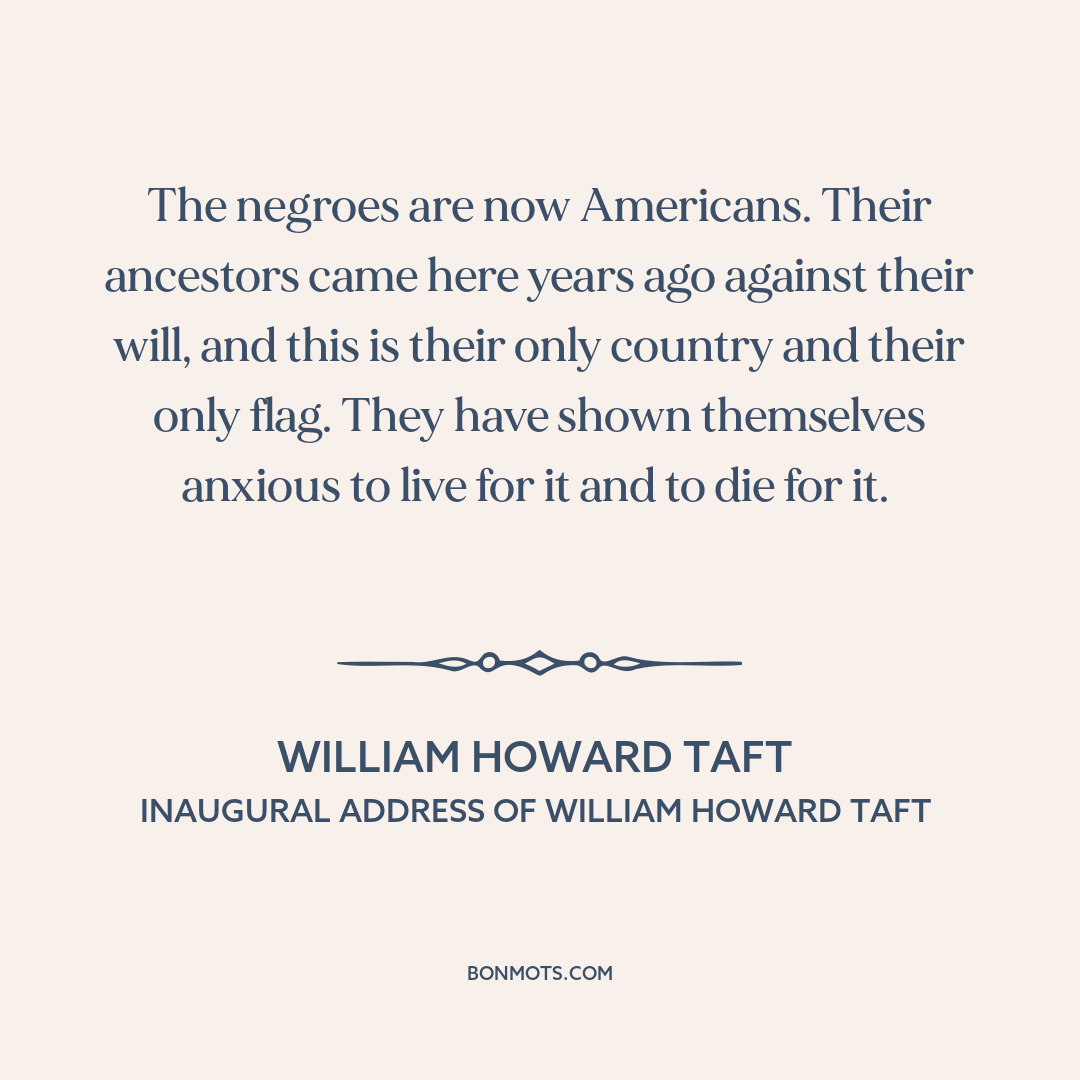 The negroes are now Americans. Their ancestors came here years ago against their will, and this is their only country and their only flag. They have shown themselves anxious to live for it and to die for it.