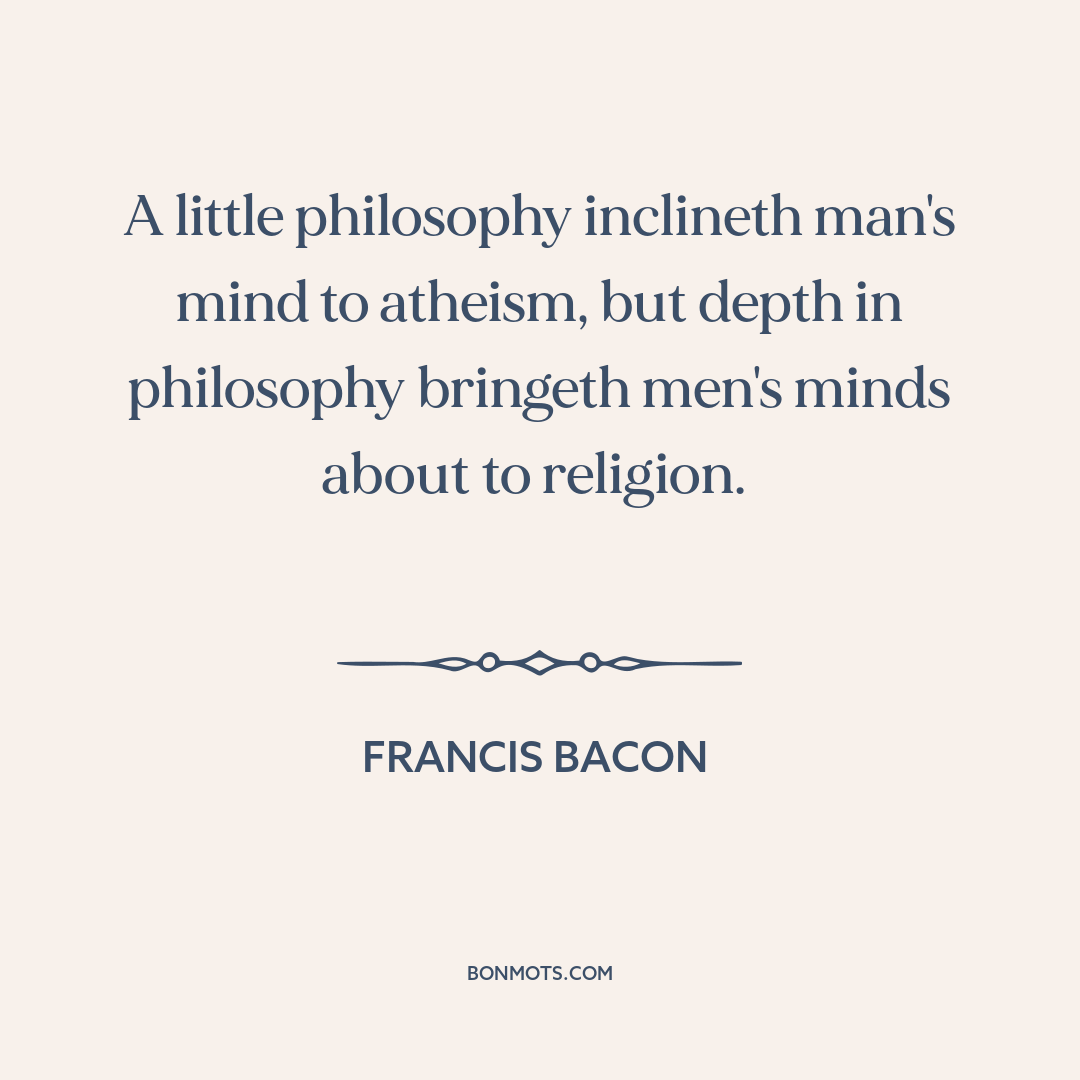 A little philosophy inclineth man's mind to atheism, but depth in philosophy bringeth men's minds about to religion.