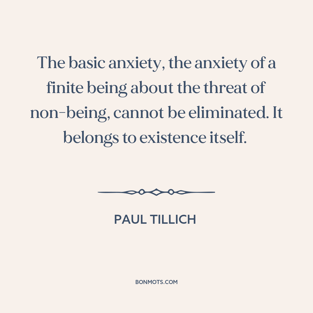 The basic anxiety, the anxiety of a finite being about the threat of non-being, cannot be eliminated. It belongs to existence itself.