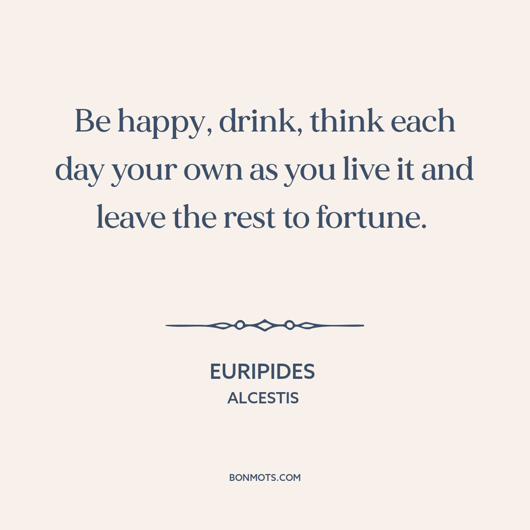 Be happy, drink, think each day your own as you live it and leave the rest to fortune.