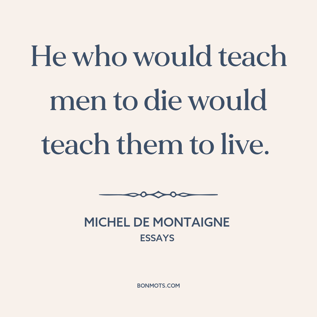 De Montaigne, Michel. "Que Philosopher C'Est Apprendre a Mourir [That to Study Philosophy is to Learn to Die]." Essais [Essays]. Paris: Simon Millanges and Jean Richer, 1580.