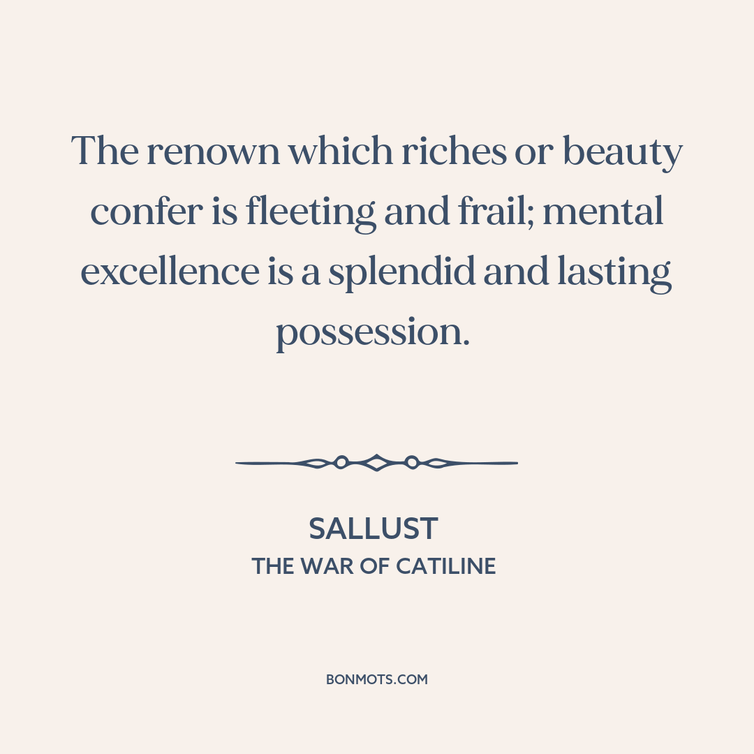 The renown which riches or beauty confer is fleeting and frail; mental excellence is a splendid and lasting possession.