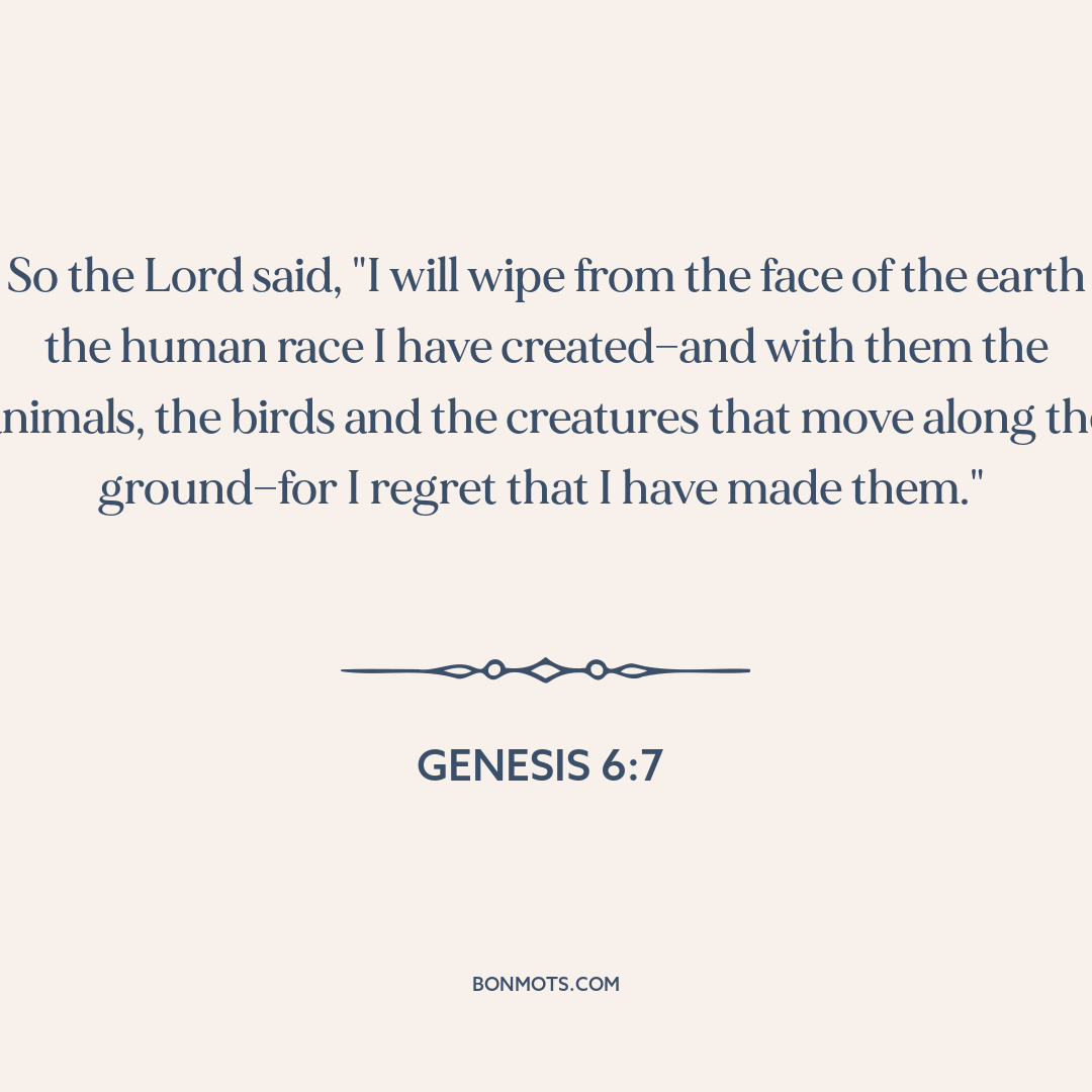 So the Lord said, "I will wipe from the face of the earth the human race I have created—and with them the animals, the birds and the creatures that move along the ground—for I regret that I have made them."