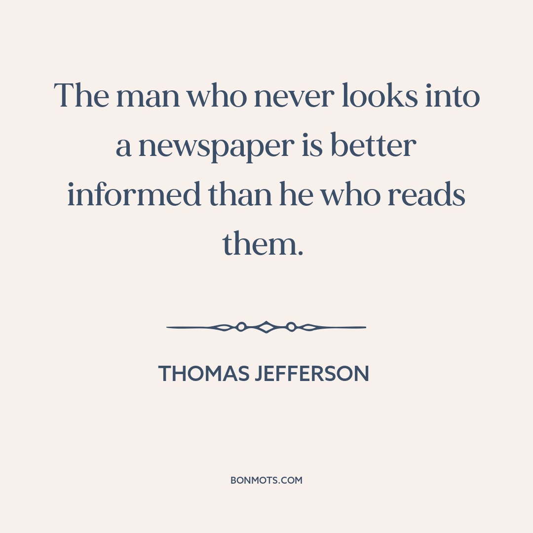 The man who never looks into a newspaper is better informed than he who reads them.