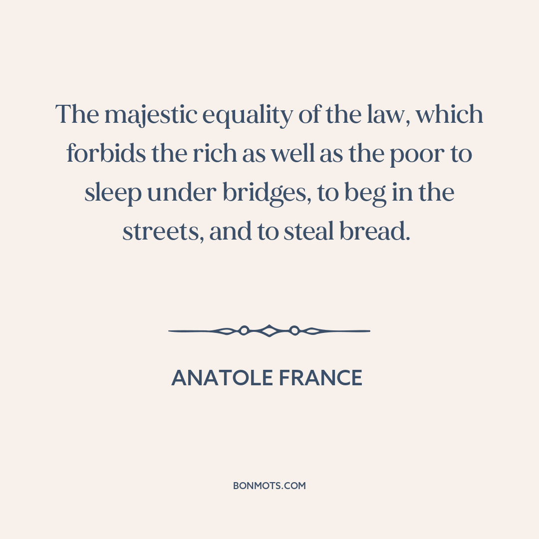 The majestic equality of the law, which forbids the rich as well as the poor to sleep under bridges, to beg in the streets, and to steal bread.