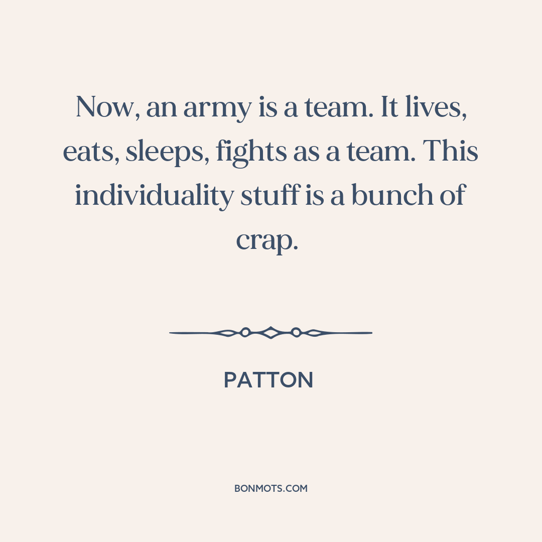 Now, an army is a team. It lives, eats, sleeps, fights as a team. This individuality stuff is a bunch of crap.