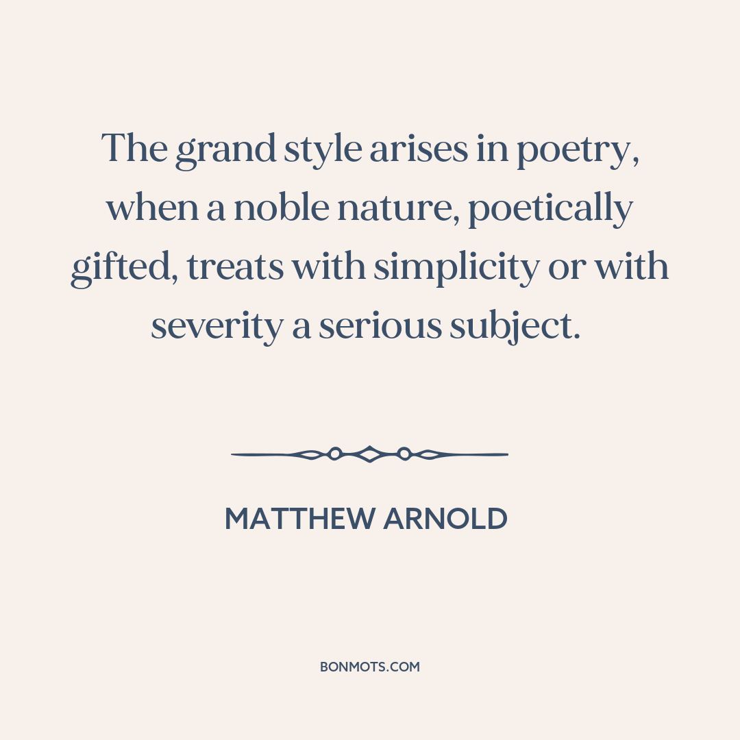 The grand style arises in poetry, when a noble nature, poetically gifted, treats with simplicity or with severity a serious subject.