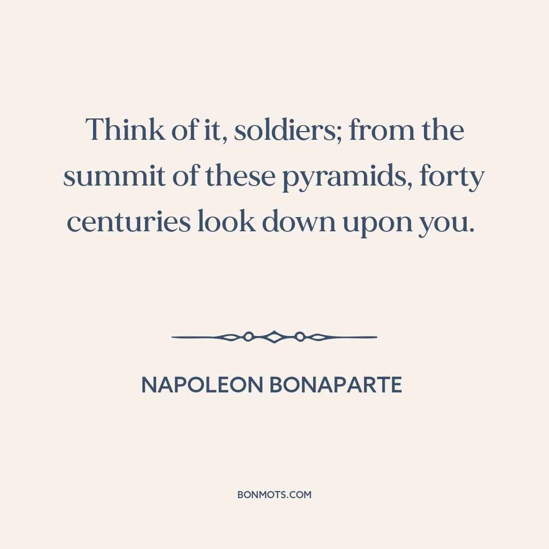 Think of it, soldiers; from the summit of these pyramids, forty centuries look down upon you.