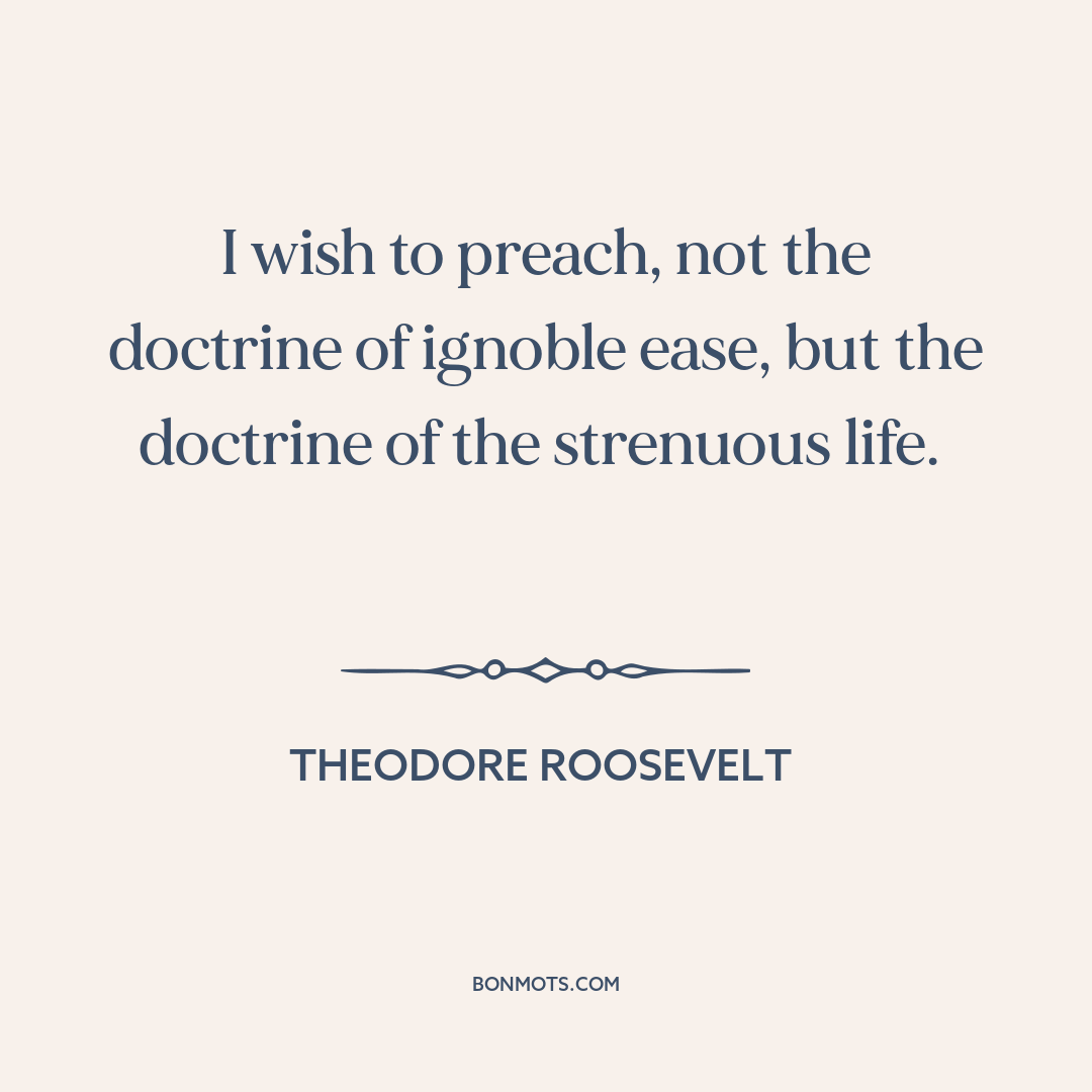 I wish to preach, not the doctrine of ignoble ease, but the doctrine of the strenuous life.